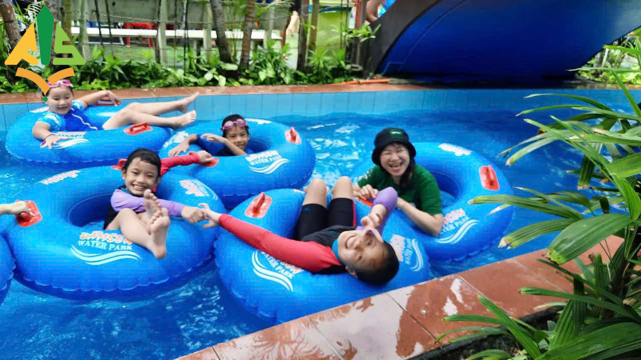 Zooming down and screaming our hearts out in the water slides ๐จ,