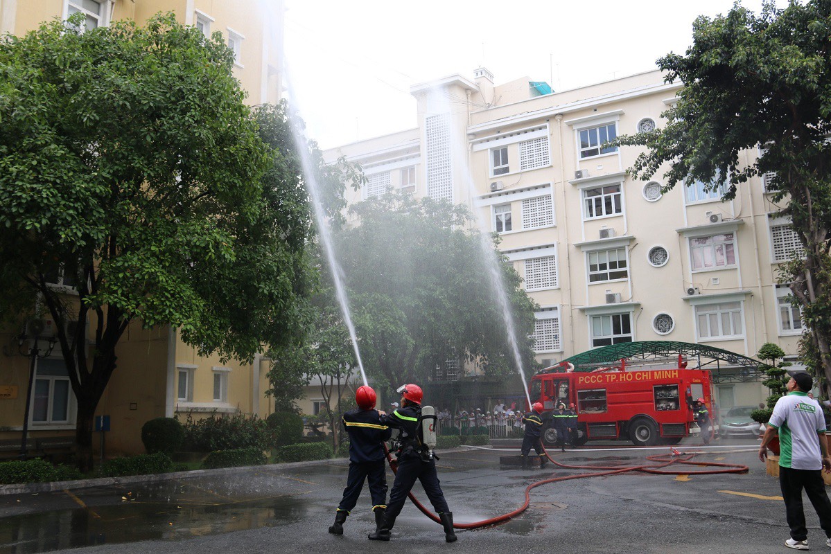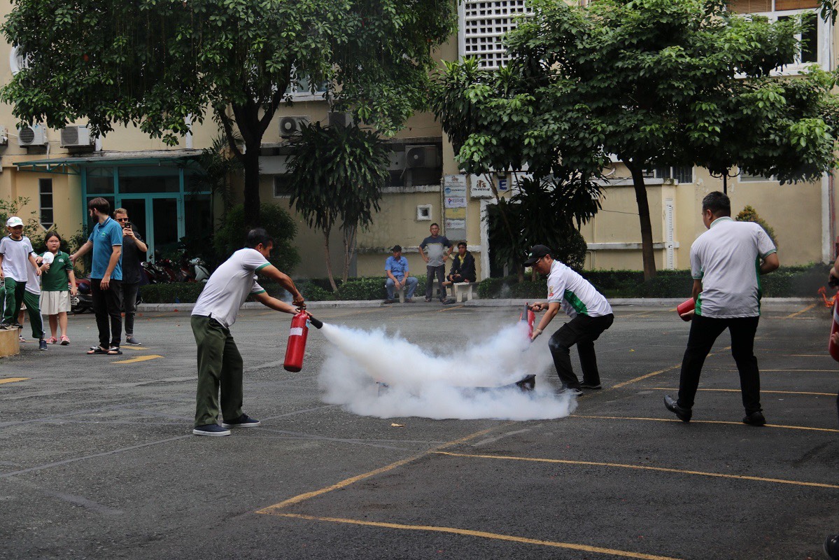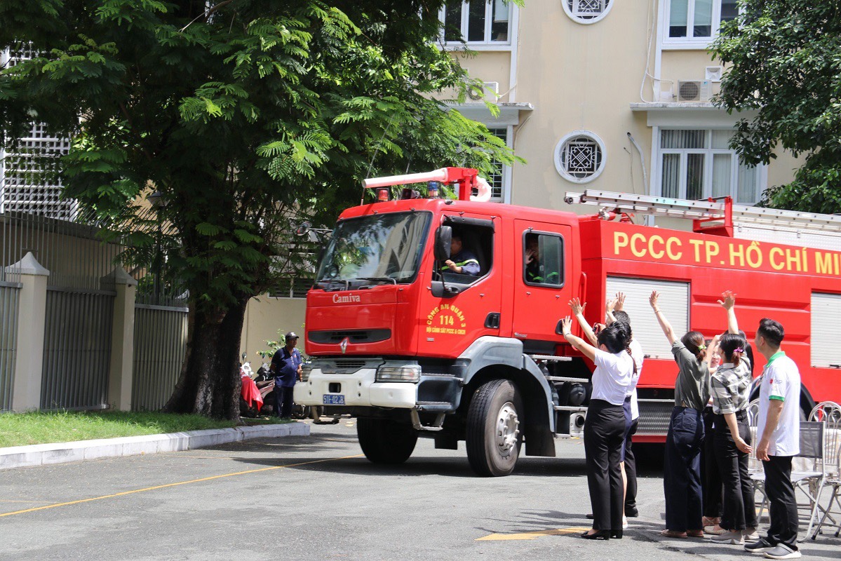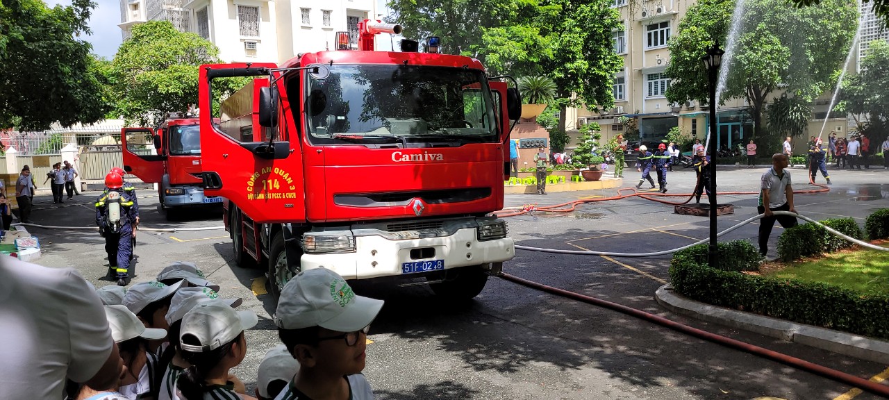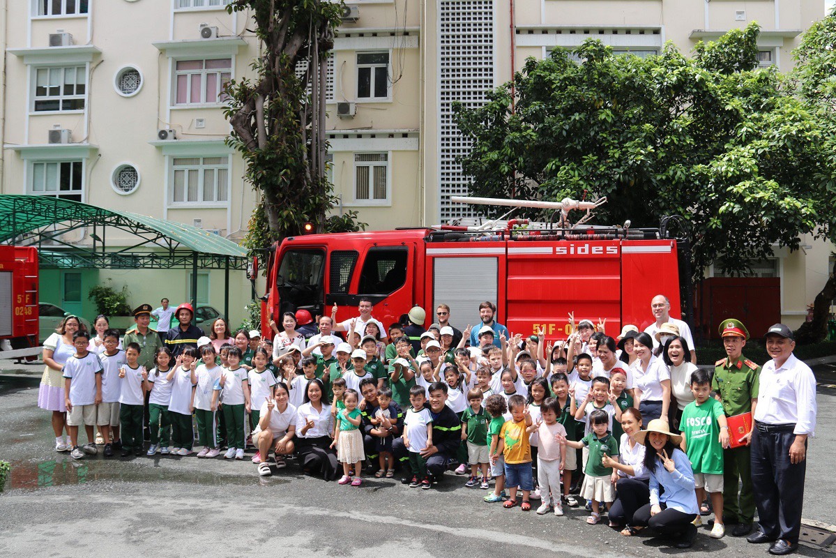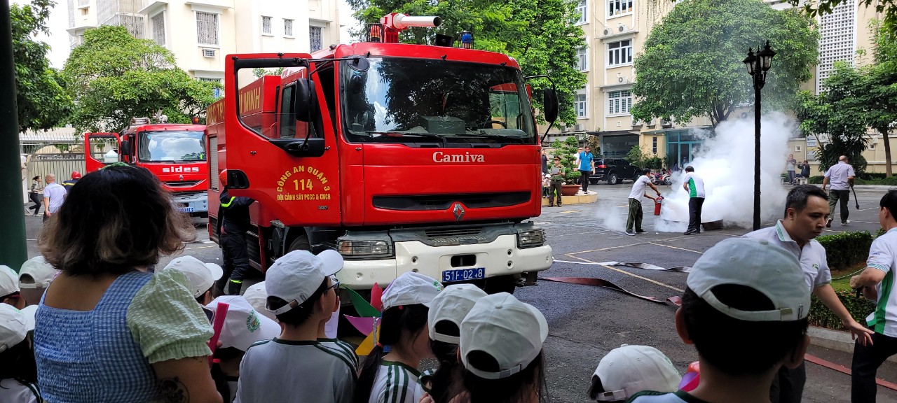 FOSCO Company held an extremely thorough fire drill on August 31st, 2023. The fire dill was hosted by the Fire Department of District 3 and involved two fire trucks along with their firefighters and rescue team. Participants included selected FOSCO staff, our FIS primary students, and actors as the victims. Students were able to observe how a rescue mission was performed safely. Firefighters and FOSCO staff also used the real water hose to extinguish a fake building fire. It was very wet! There was also a fire-extinguisher demonstration, which included many staff extinguishing a fire pit. We were joined by the FOSCO Board of Directors and took a lovely photo to celebrate the successful fire drill. Thank you, FOSCO!
