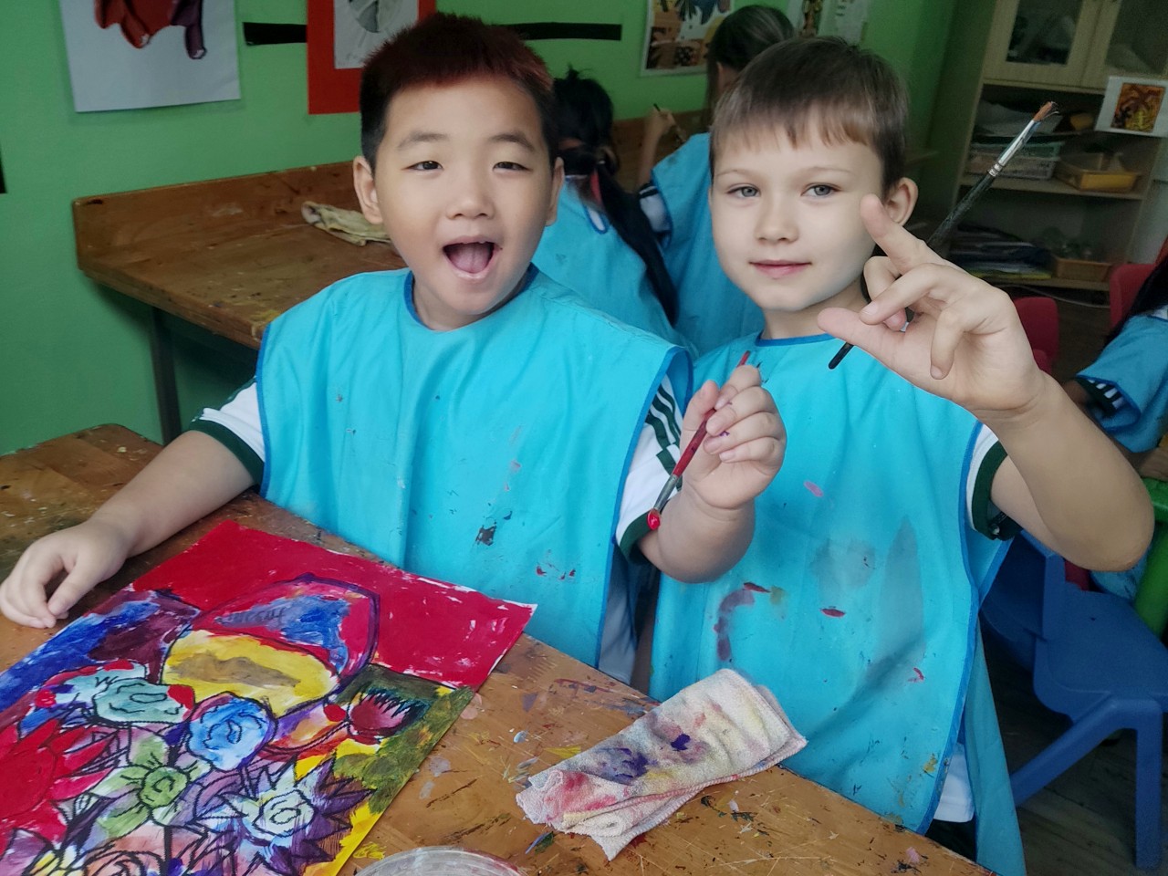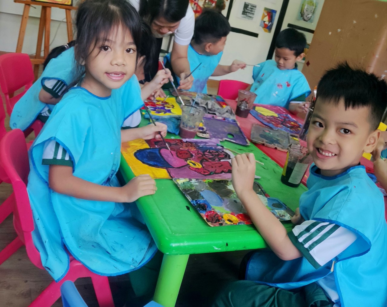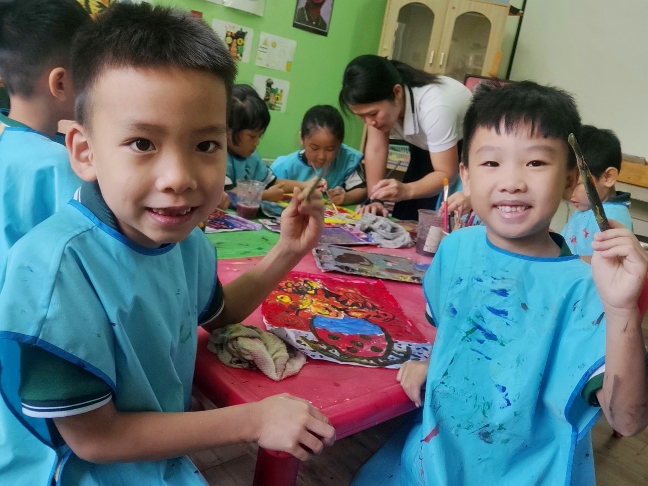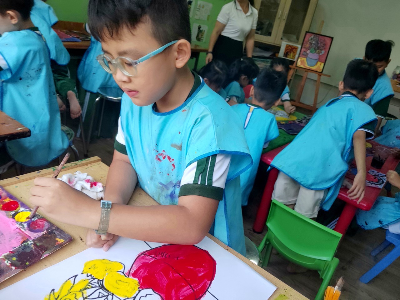 Grade 1 loved painting Vincent Van Gogh's "Sunflowers." They worked in pairs to help them develop teamwork skills. Nice job, Grade1!