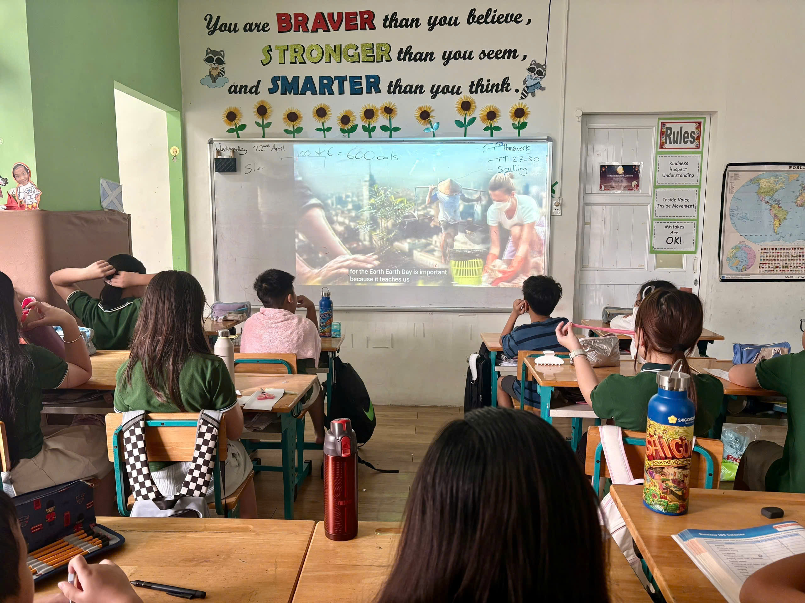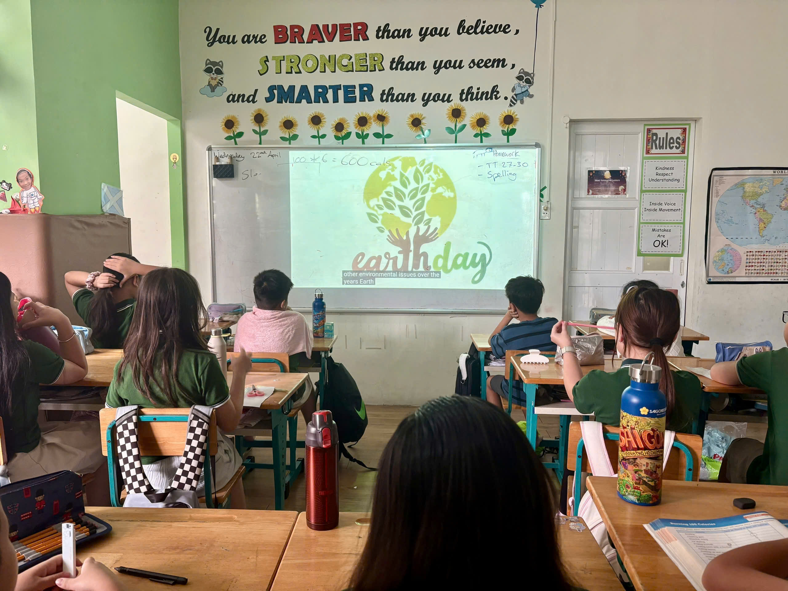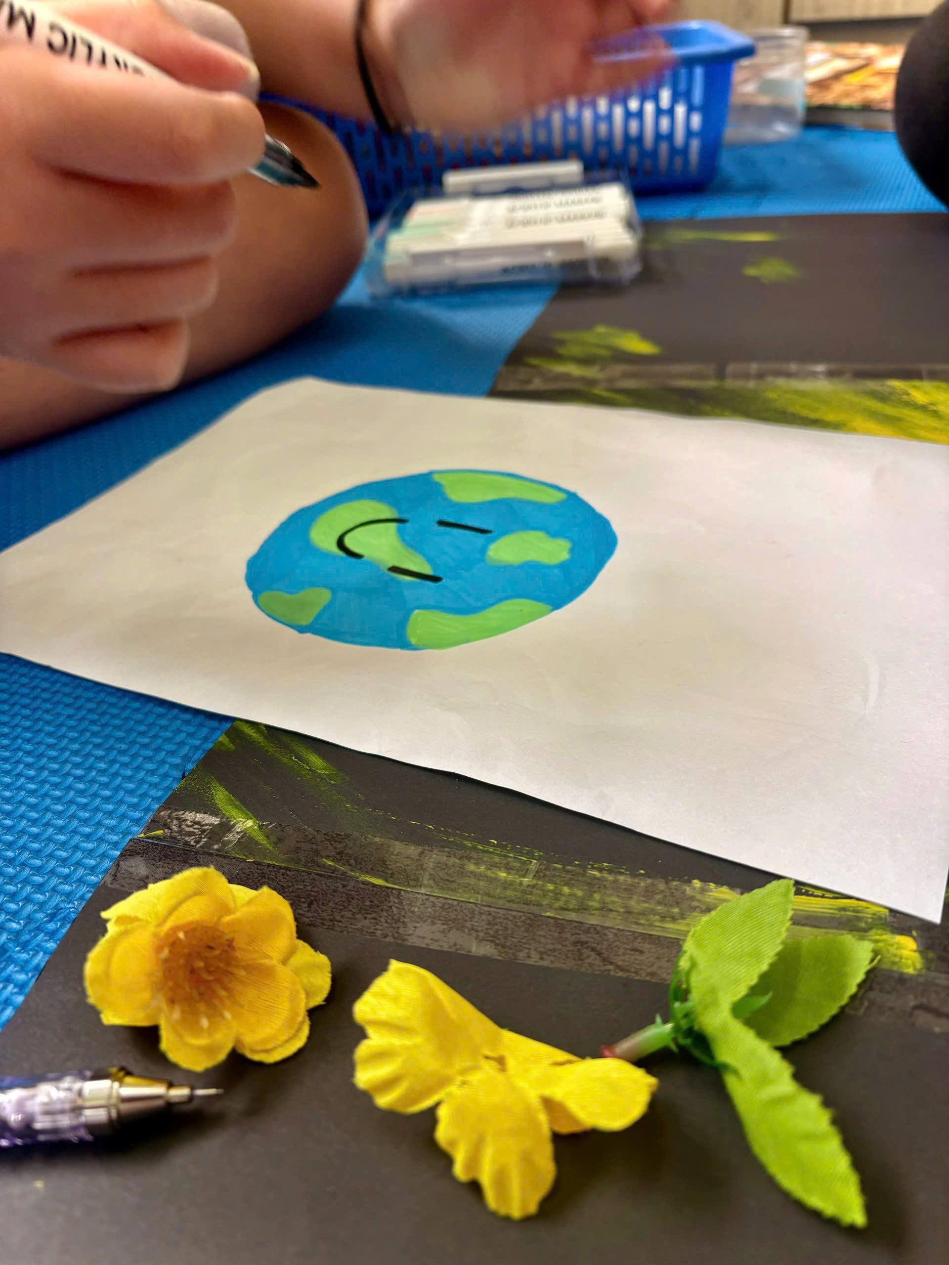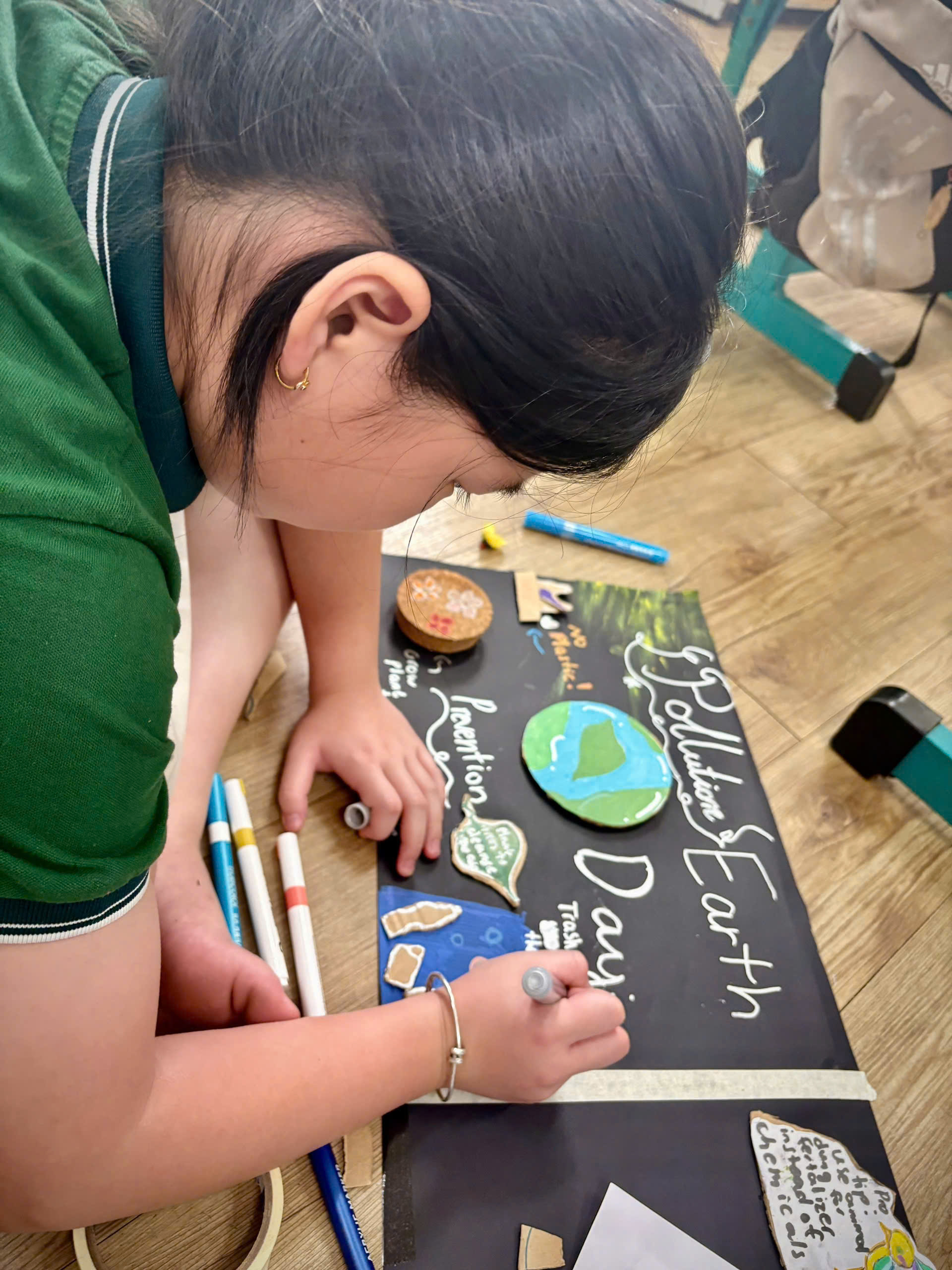 Grade 4 conducted research and then worked in teams to create posters from recycled materials celebrating Earth Day ![]()
