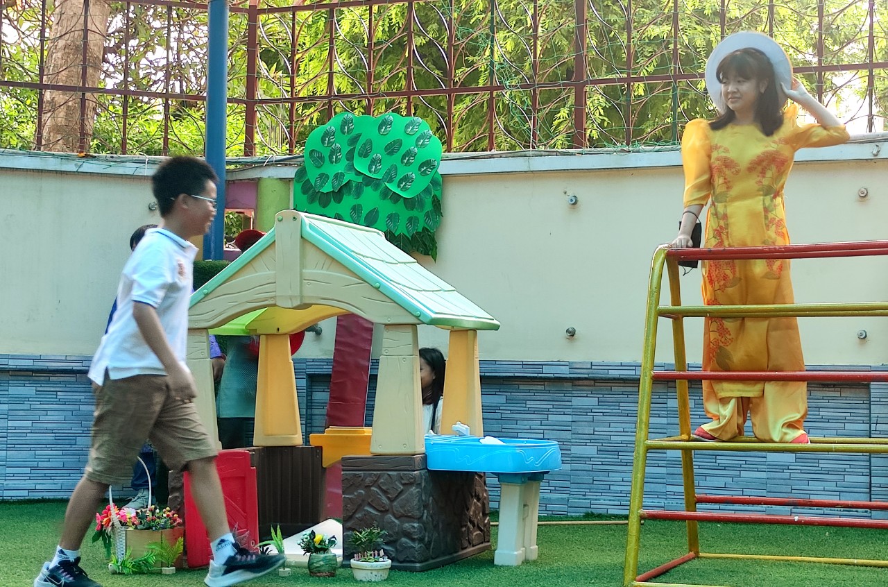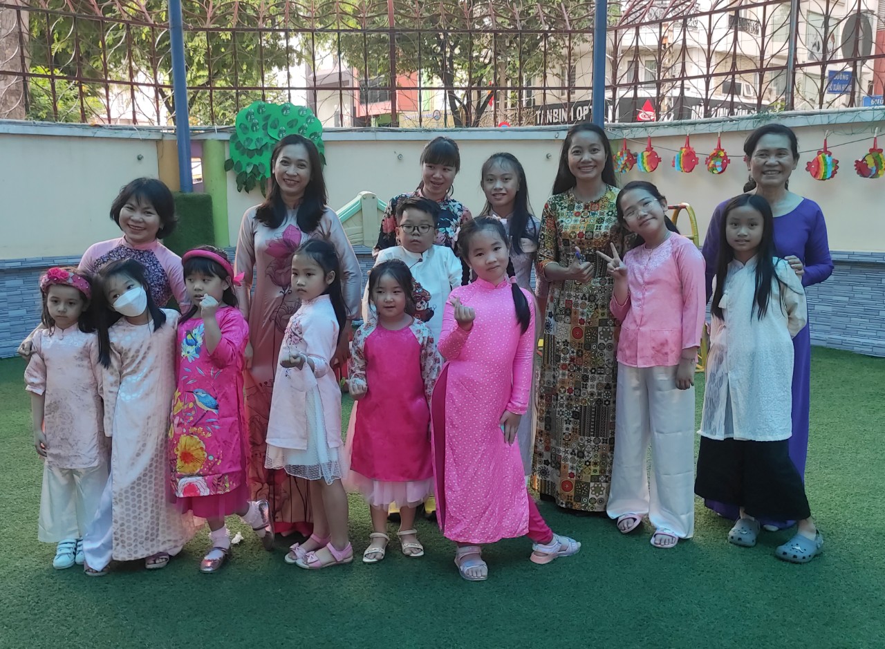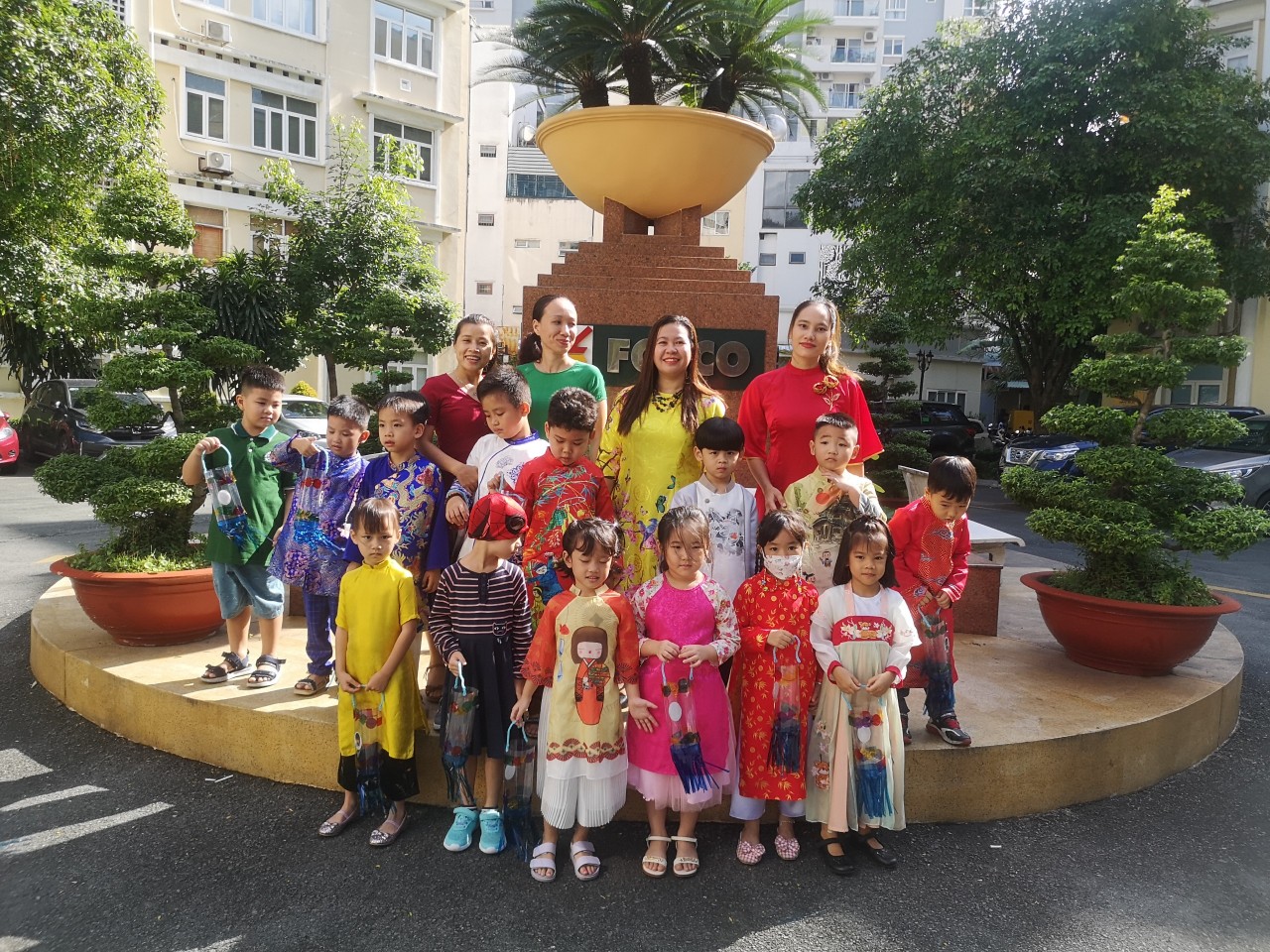 During our break time, the entire school enjoyed moon cakes and took many photos with friends, teachers, and staff. We even took photos by Ao Dai color!