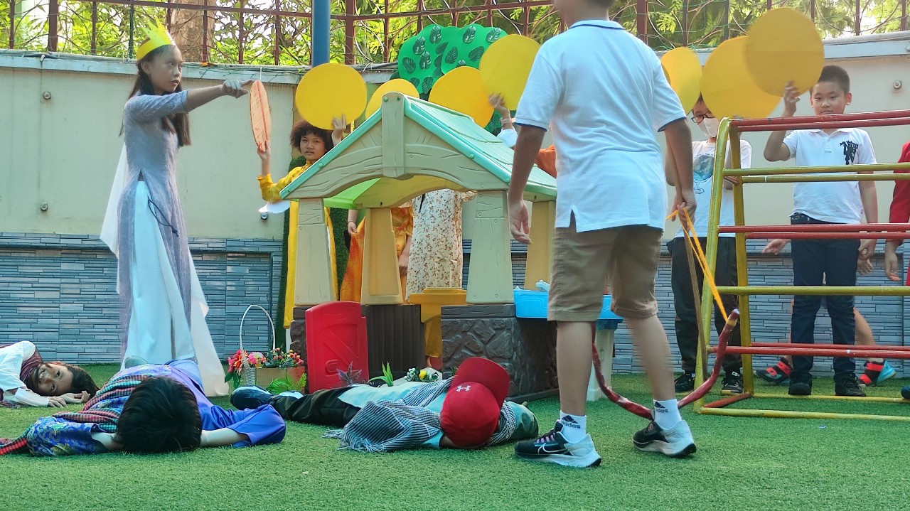 All grades joined together in the morning for a quick fashion show to display their beautifully colored Ao Dai . Students shared their lantern creations and felt the warmth of tradition. During our morning assembly, we enjoyed performances from our students. Beautiful Vietnamese poems were recited by our wonderful students and Grade 4 sang a traditional Vietnamese song. Thank you to all of our dragon dancers! You marveled us with your skills. Our 5th graders performed Vietnam’s famous legend “The Moon Boy” and everyone loved their great acting skills!