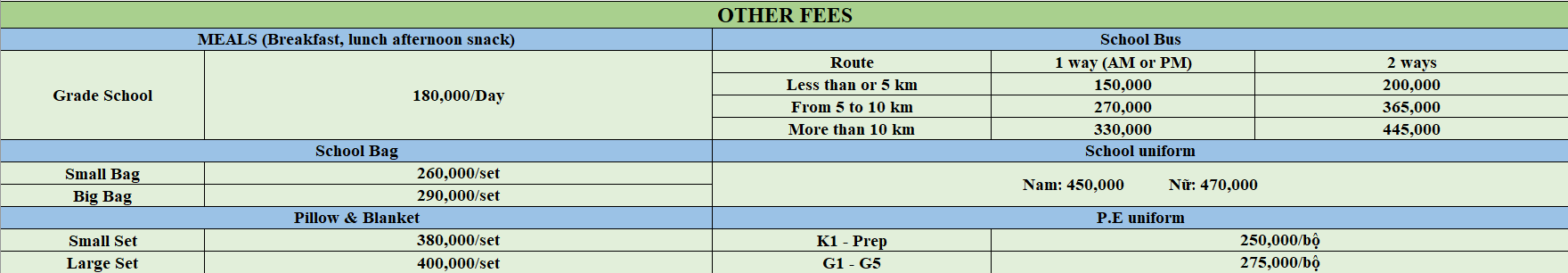 Bilingual tuition fees