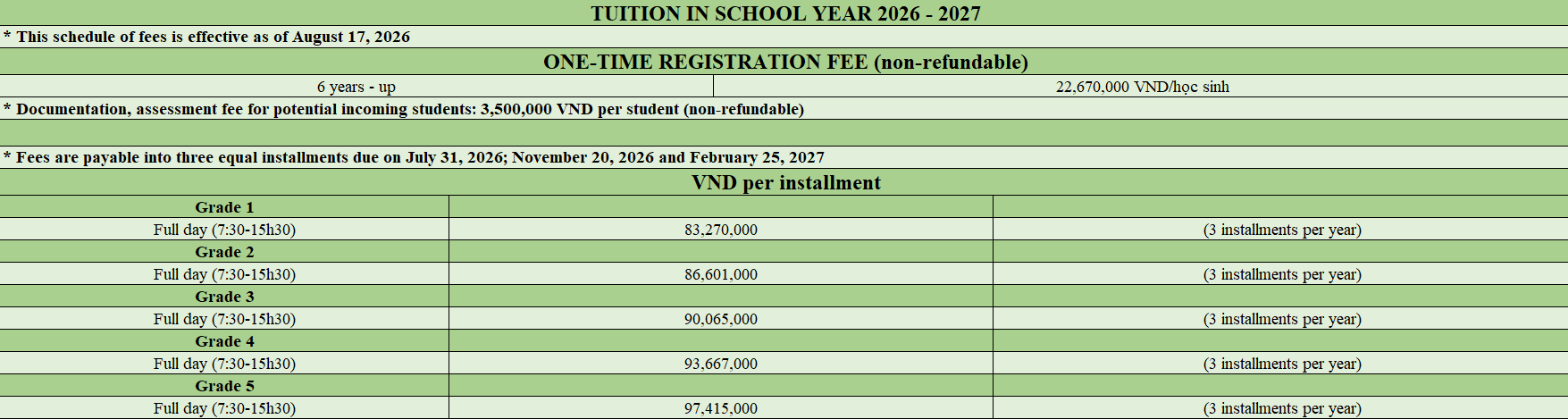 - Summer tuition fees are non-refundable under any circumstances.