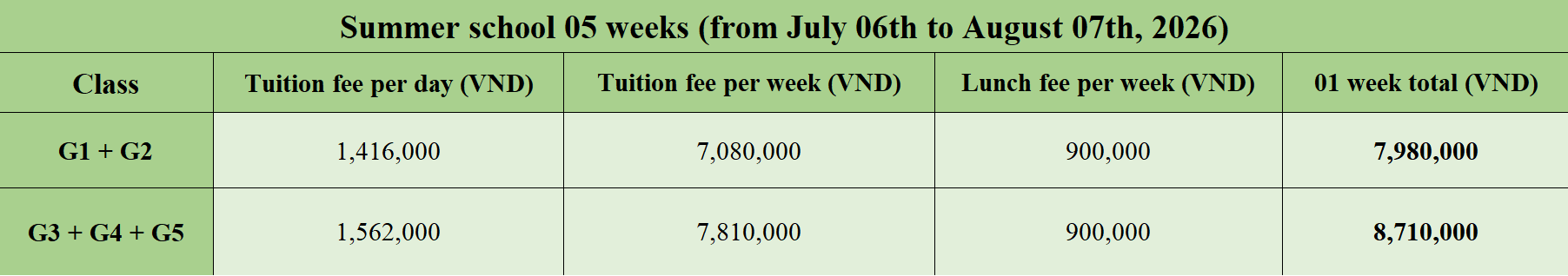 - 5% tuition discount for students who pay the full 5-week summer fee on time.