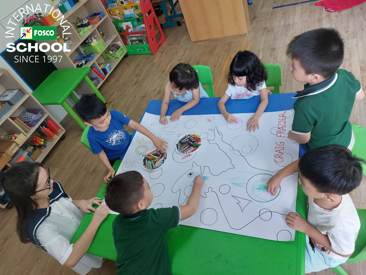 Thank you to Ms. Huong, Ms. Thin and Ms. Linh for volunteering to host an activity for the K2 classroom. Students got to make cards for teacher's day. They also listened to a story and colored the book cover for a Dr. Seuss Book. Lastly, they got to cut fruits and make their own yogurt snack adding fruit and cereal to it. They really enjoyed having activities with parents!