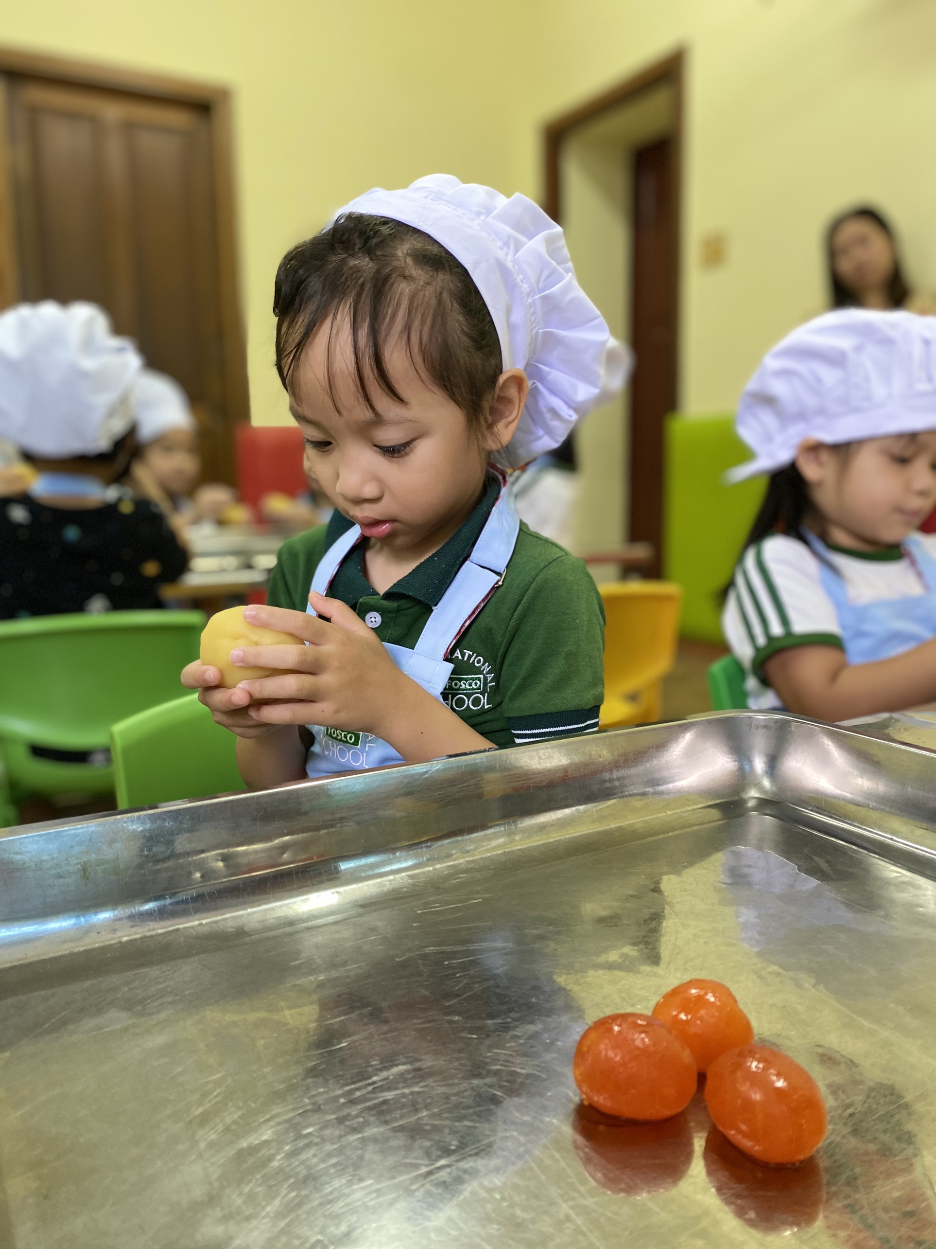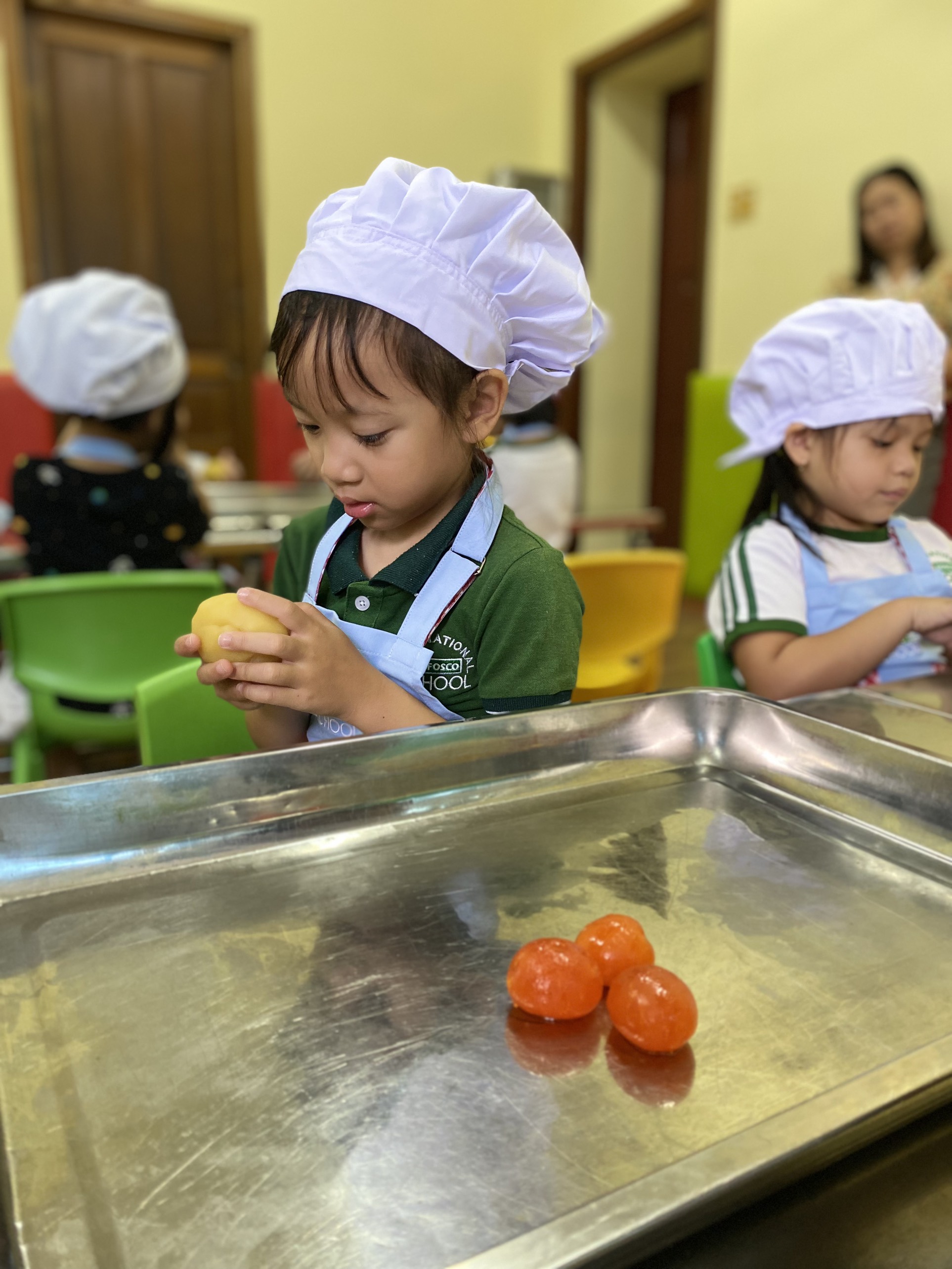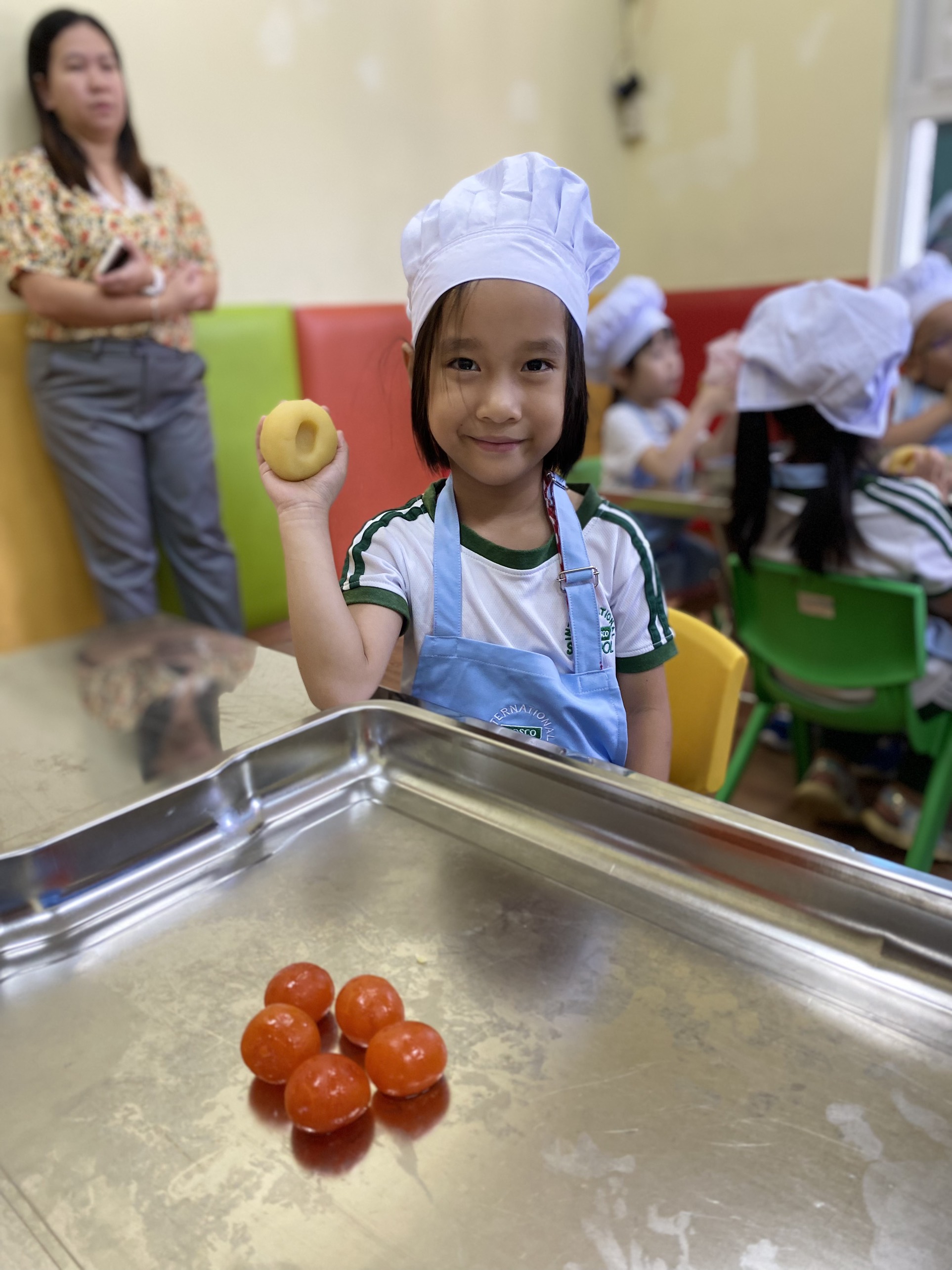 The Kinder Captains had a fantastic kitchen adventure with Mr. Quoc Anh, the school chef. They observed the step-by-step process of making mooncakes, and without any hesitation, they too kneaded the dough. "It felt sticky at first, but I just imagined that it's play dough, so I wasn't scared to touch it!", Bao said. The mooncake-making workshop was indeed culturally inclusive, and the kindergarten students were able to learn new words. That experience will surely leave a good mark on our young learners' minds and hearts.