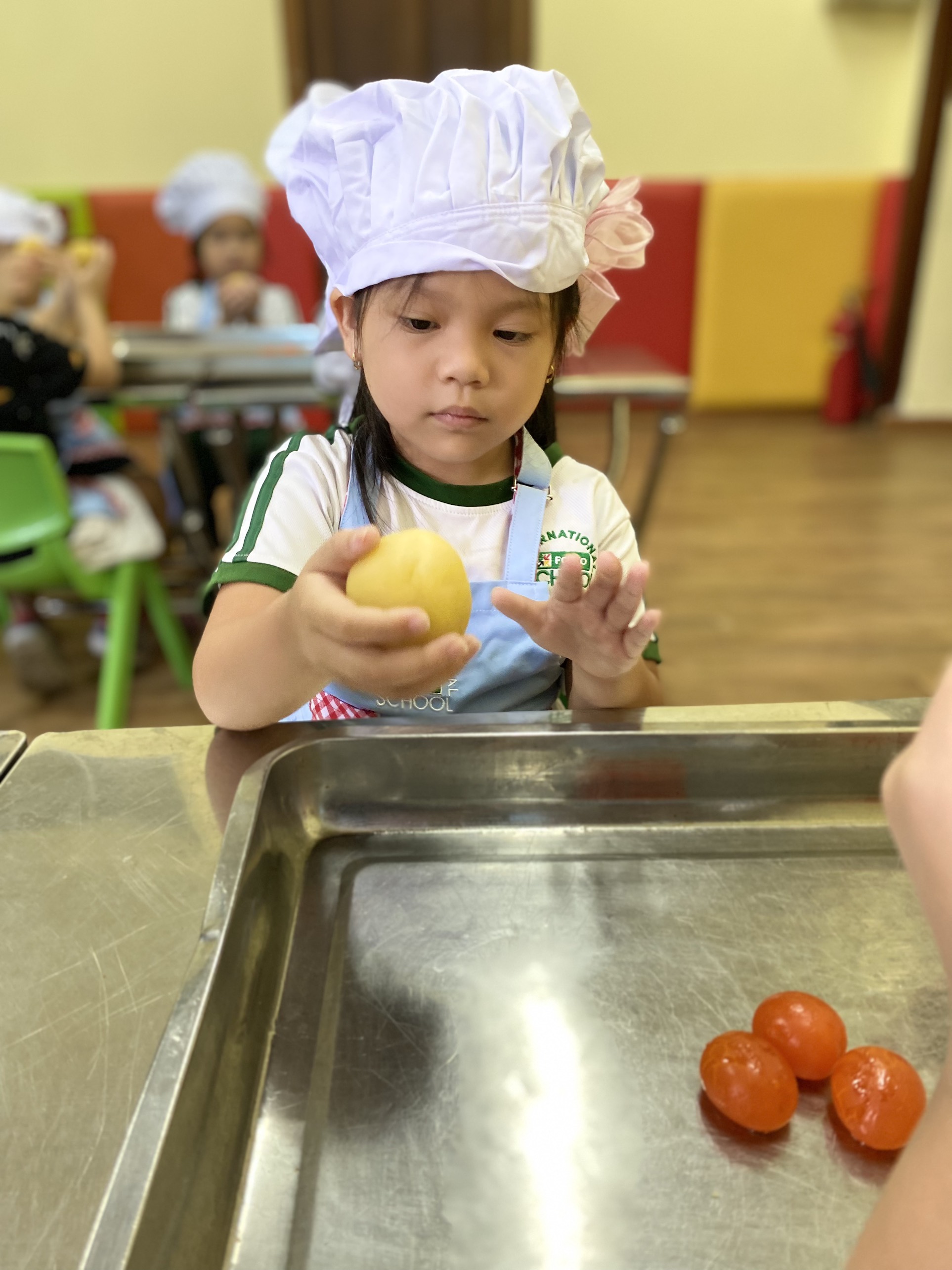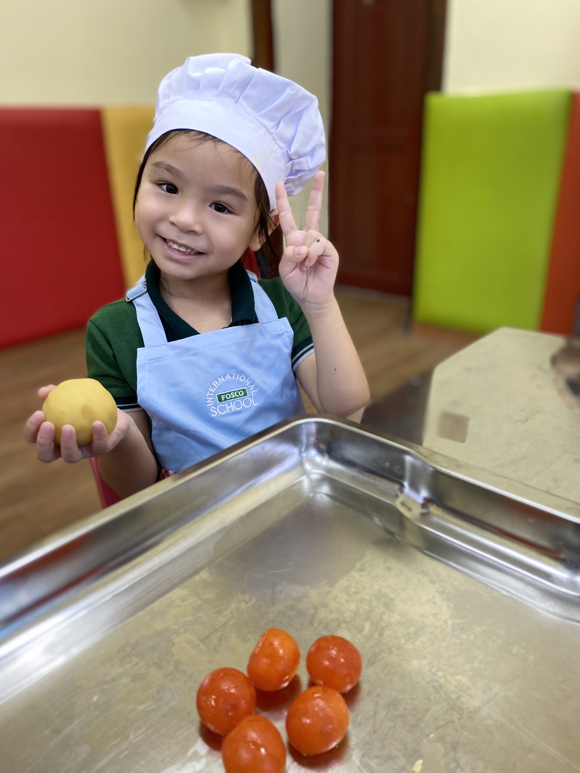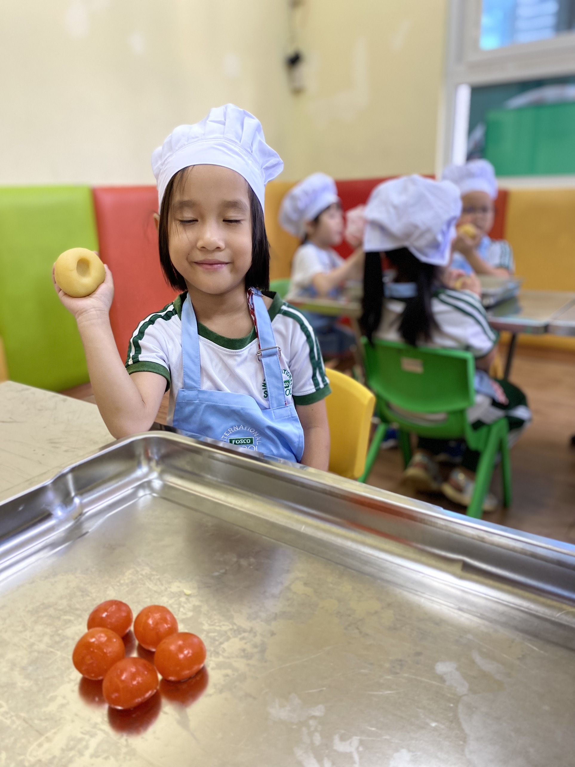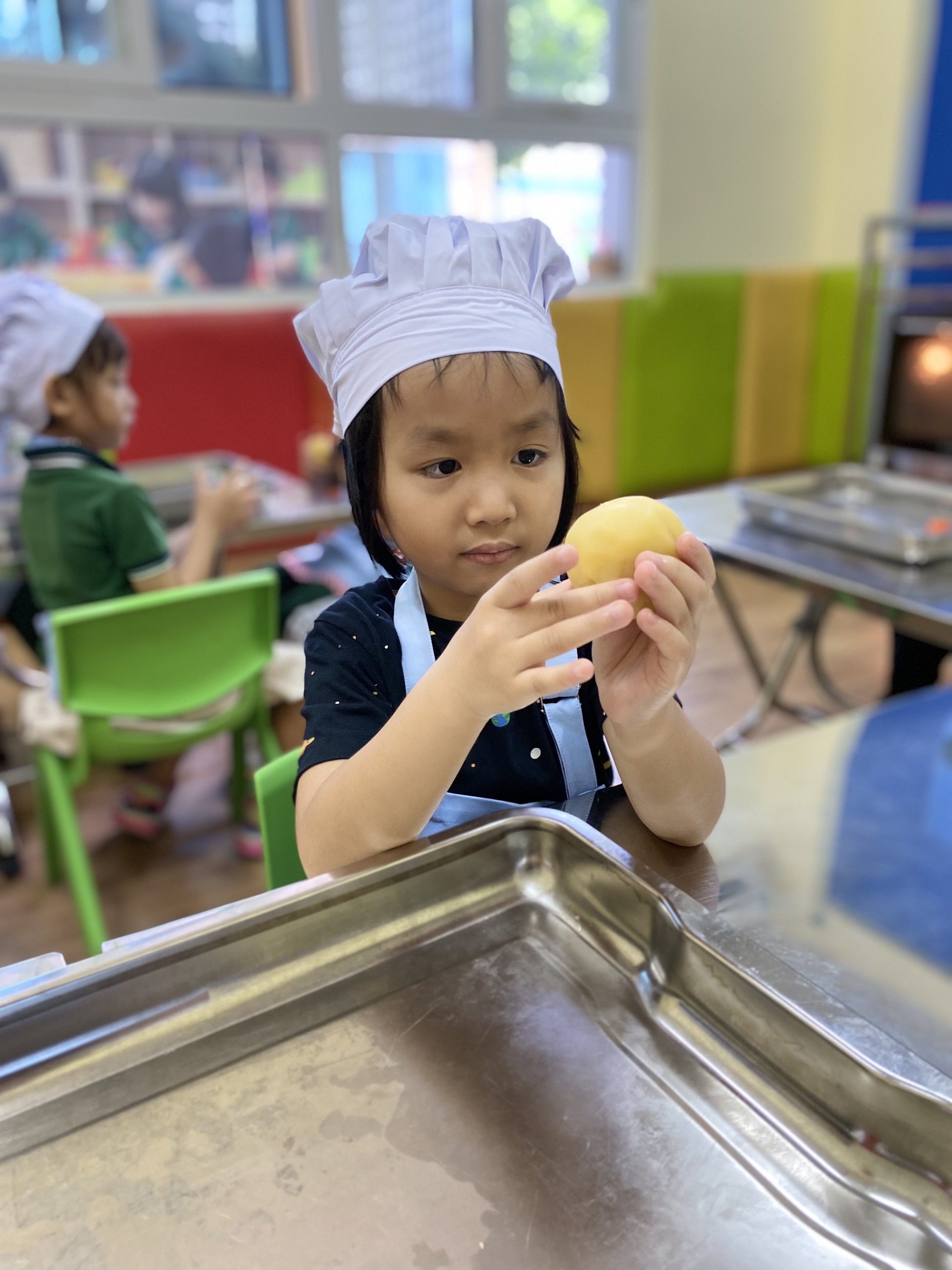 The Kinder Captains had a fantastic kitchen adventure with Mr. Quoc Anh, the school chef. They observed the step-by-step process of making mooncakes, and without any hesitation, they too kneaded the dough. "It felt sticky at first, but I just imagined that it's play dough, so I wasn't scared to touch it!", Bao said. The mooncake-making workshop was indeed culturally inclusive, and the kindergarten students were able to learn new words. That experience will surely leave a good mark on our young learners' minds and hearts.