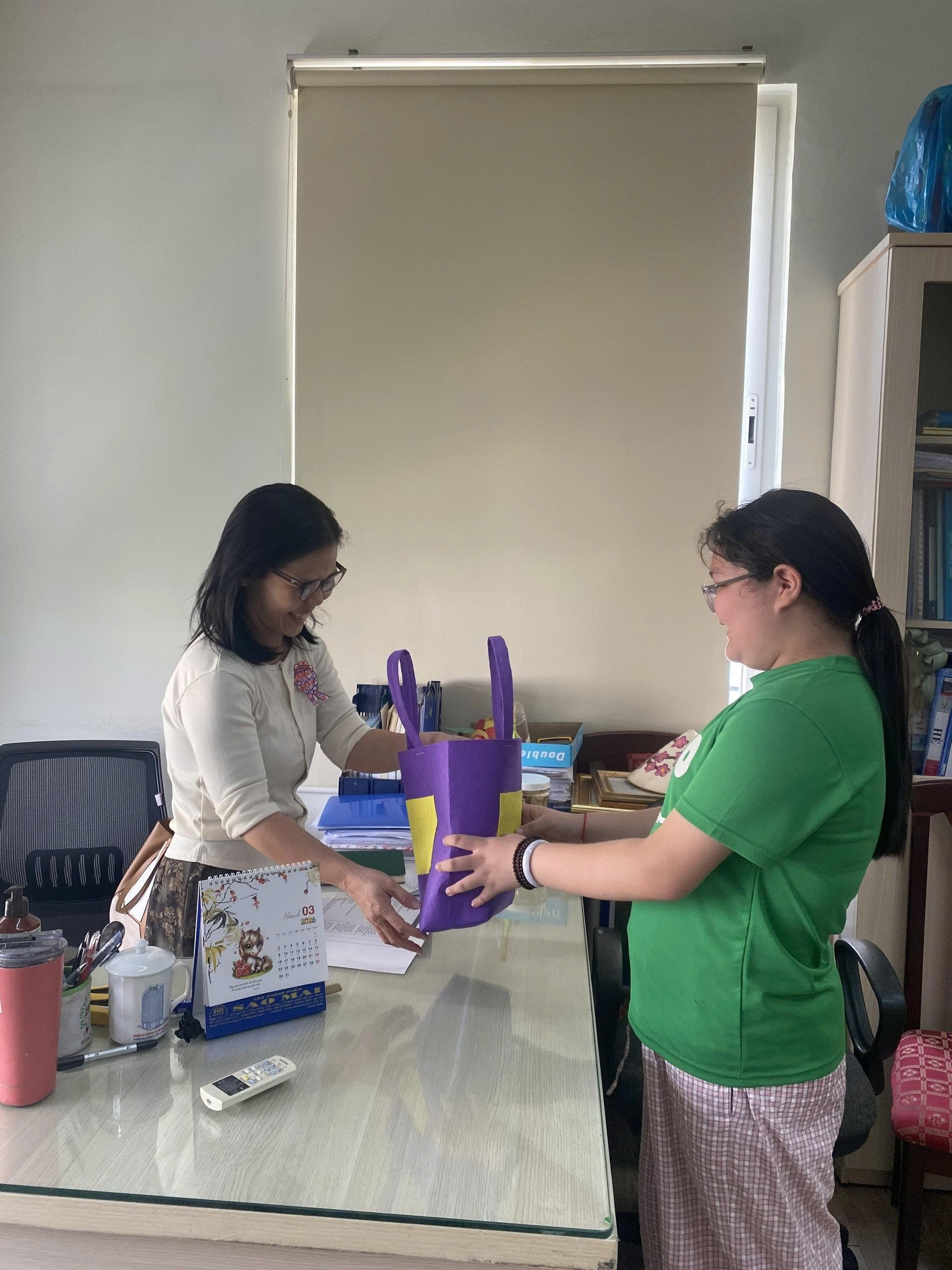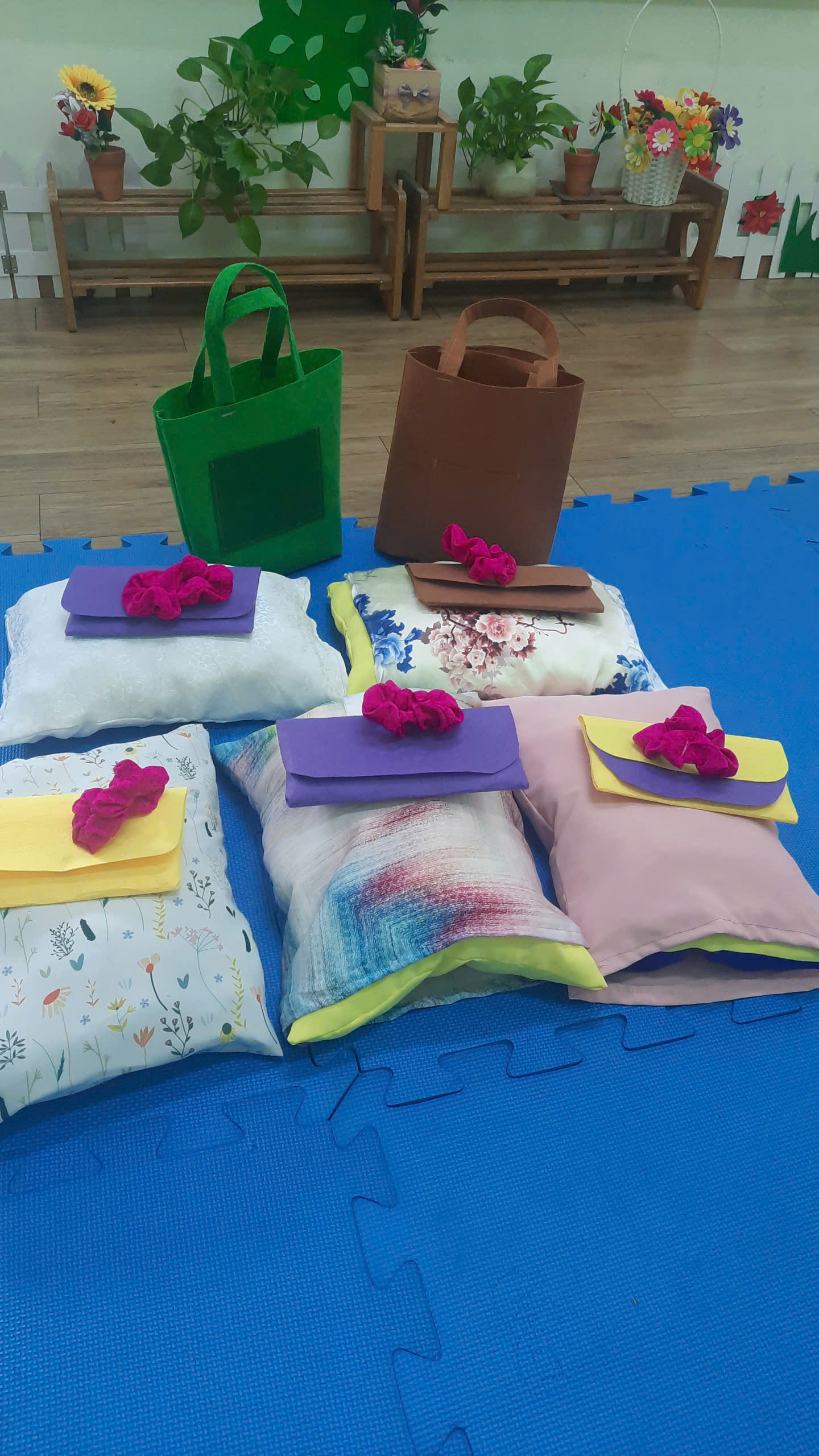 The students made scrunchies for the teachers, purses and pillows for their moms and grandmothers, as well as lunch box bags for the principal.